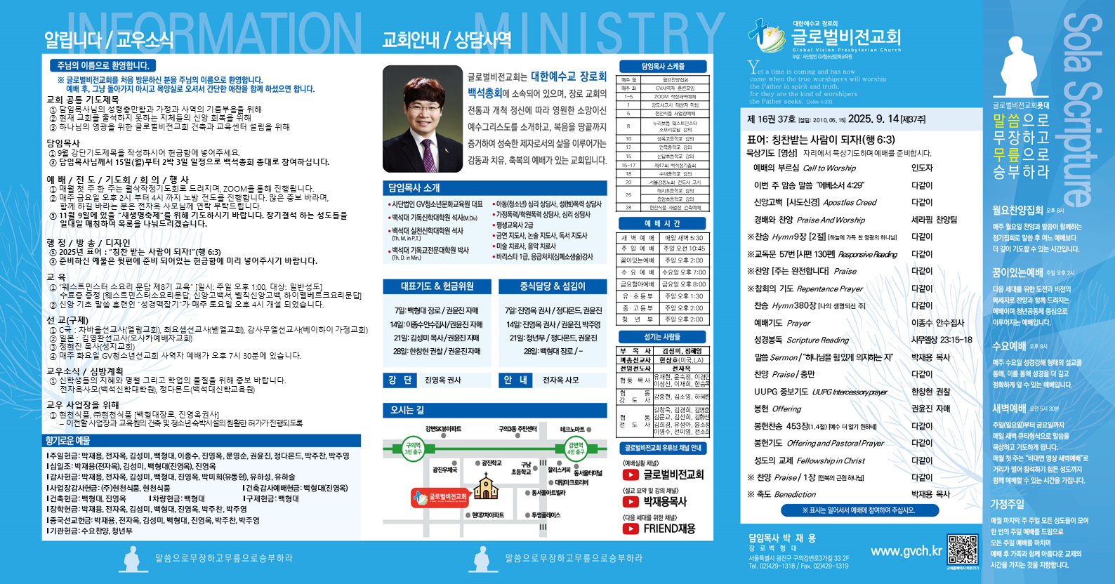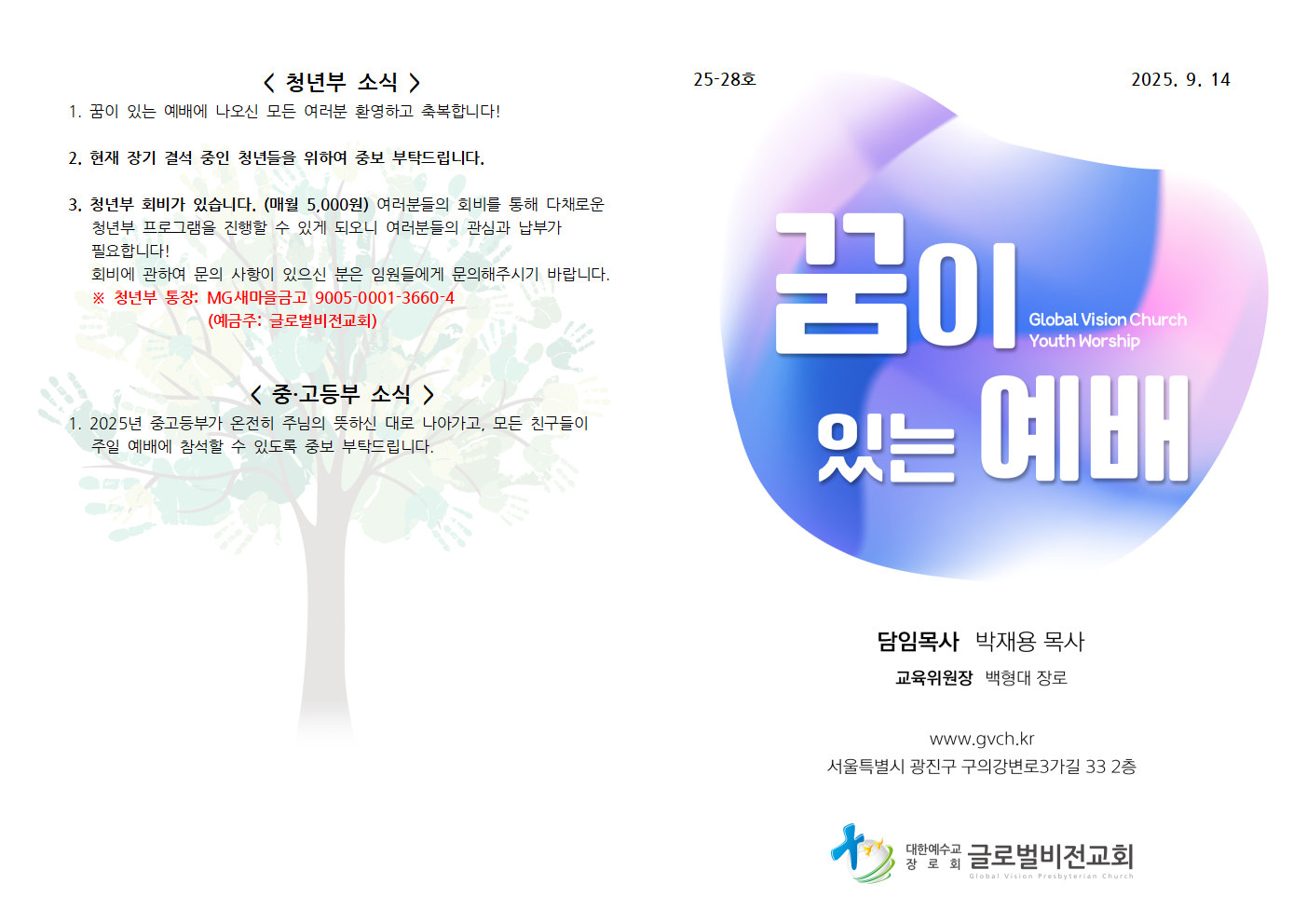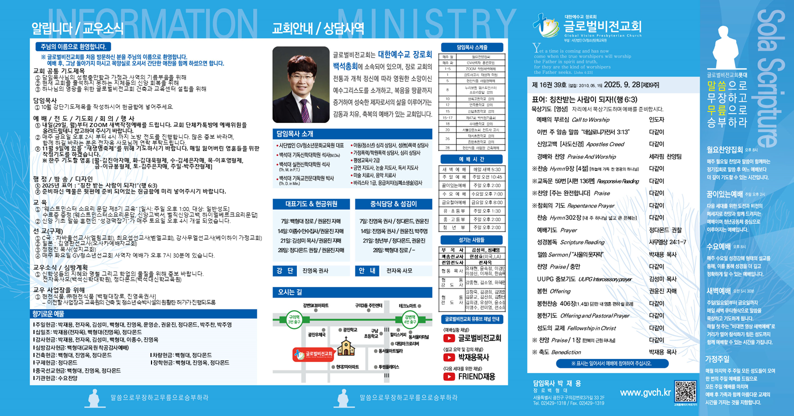 글로벌비전교회 담임GV청소년선교회 대표사단법인 GV청소년문화교육원 대표