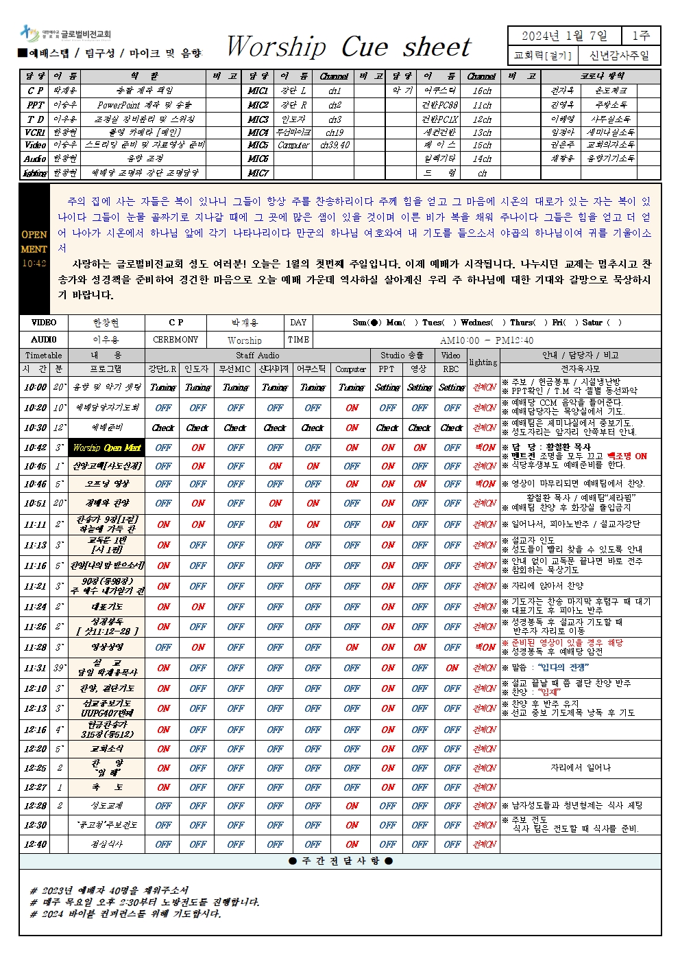 주일오전예배 큐시트